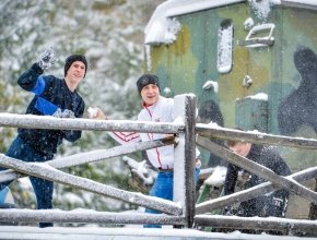 Бавилися у сніжки. Діти проти інструкторів. Особливе задоволення дітки отримують поціливши інструктору по макітрі)) Інструктори - навпаки, турбуются, якщо бачуть, що комусь влучили. У розпалі битви інструкторку Сашу схопили, звалили і почали закидати снігом. Чую вереск про допомогу. Не встигаю… Маленьке янголя 6-ти років з криком: «Саша, я врятую тебе!». З льодянкою у формі лопати в руках мчить до неї. Та з усією, притаманною лише шестирічнім дівчинкам, силою лупцює цією «лопатою» ворогів… а влучає Саші по голові…